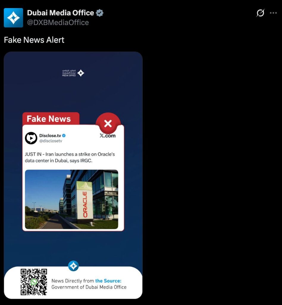 Posted onApril 3, 2026inWorld TITLE: Dubai Denies Reports of IRGC Strike on Oracle’s Data Center, Tensions Between UAE and Iran Remain High