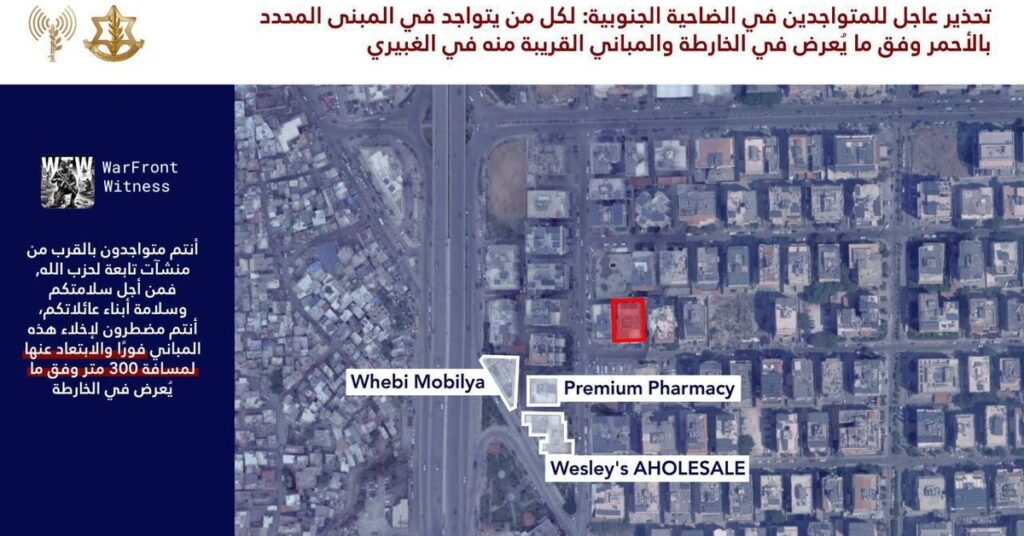 Posted onApril 5, 2026inWorld Israel Forces Issue Critical Warning to Residential Complex in Lebanon’s Dahieh Neighborhood