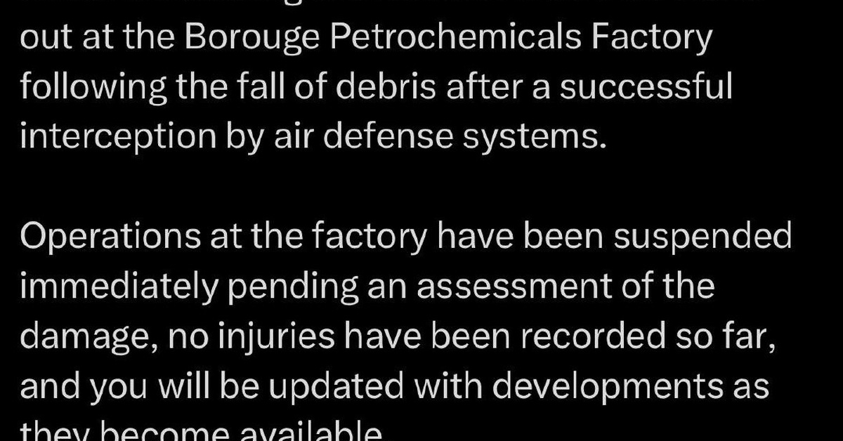 Abu Dhabi authorities have confirmed that a series of fires broke out at the Borouge Petrochemicals Industrial Complex in the Emirate of Abu Dhabi, United Arab Emirates. According to reports from the Emirate’s Environment Agency, the incident is believed to be a result of debris from an air strike that occurred in the vicinity.