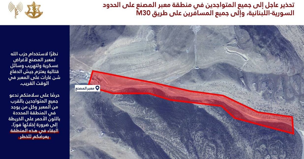 TEL AVIV, Israel – The Israeli Defense Forces (IDF) have issued a stern warning to Lebanon’s government, stating that military action is imminent against the Al Masnaa border crossing with Syria, situated in the eastern part of the country. The warning comes amid allegations of Hezbollah’s involvement in the illicit smuggling of military equipment through this border crossing.