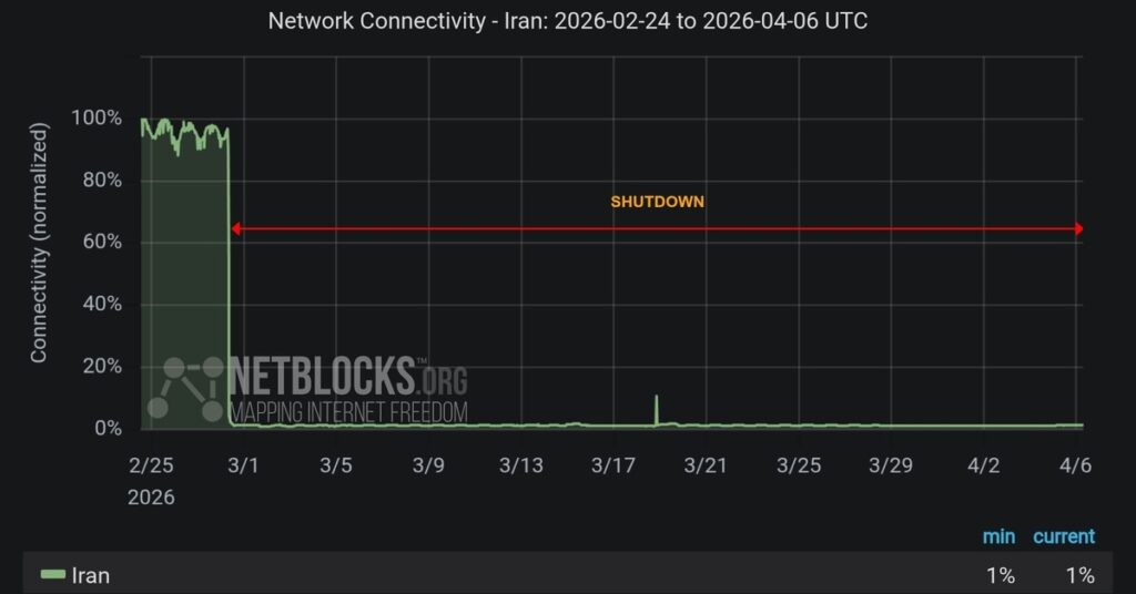 Posted onApril 6, 2026inWorld Iran Internet Blackout Enters 38th Day, Exceeding 888 Hours of International Network Disruption