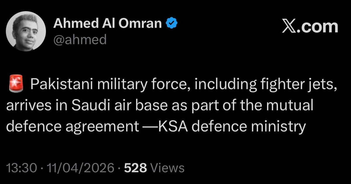 Pakistan Deploys Fighter Jets and Military Forces to Saudi Arabia Under Mutual Defense Agreement