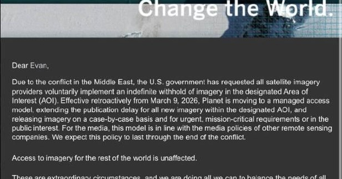 A significant development has emerged in the ongoing Iran conflict, as U.S.-based satellite imaging company Planet Labs revealed that it will no longer provide satellite images of areas within the conflict zone in response to a request from the Trump administration.