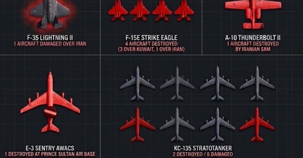 In a series of military engagements over the past few weeks, the United States Air Force has incurred significant losses in its aircraft fleet, with numerous high-altitude assets destroyed or damaged over Iranian and regional waters. The most severe losses were reported in the Middle East.